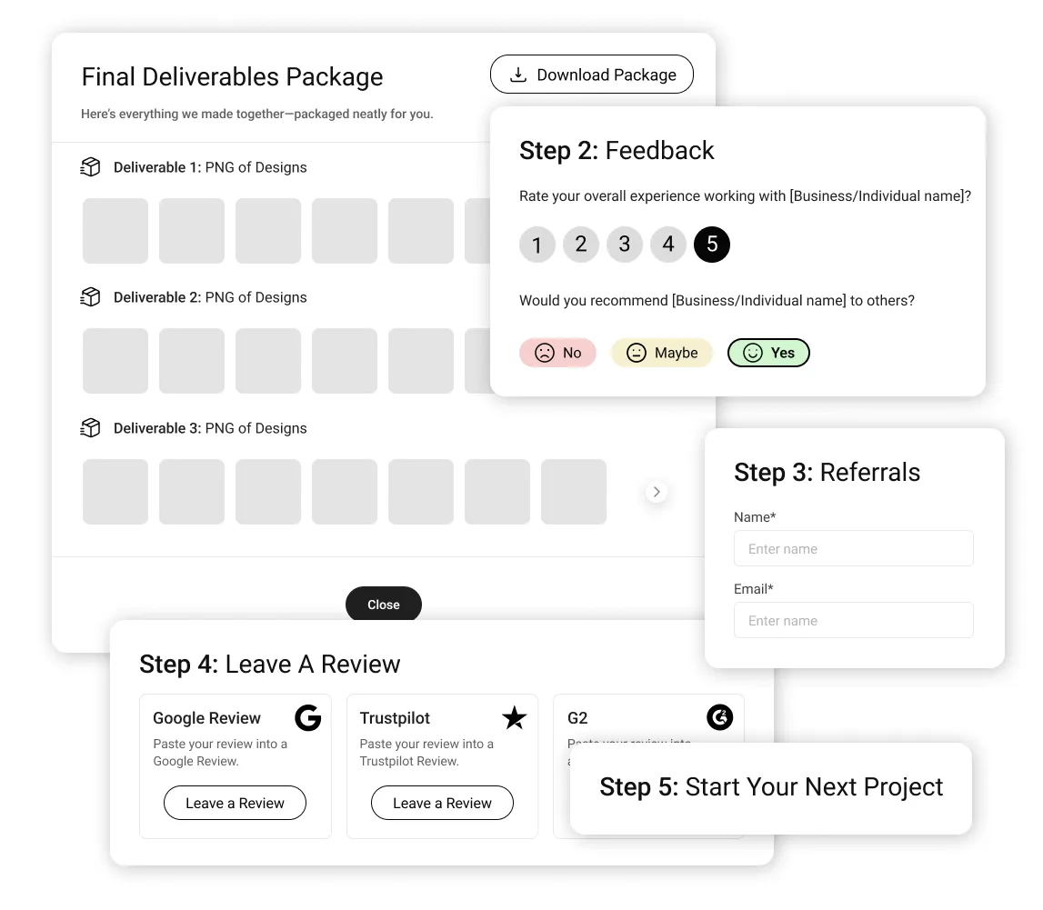 Automated Follow-Up – Collect feedback, reviews, and referrals at the end of each project.